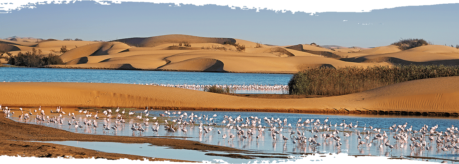 Si la Namibie n’est pas le premier pays auquel on pense lorsqu’il s’agit de safaris, il existe pourtant de très nombreux parcs nationaux et de nombreuses possibilités de circuits. Sur la côte Atlantique, le long de la côte des squelettes, à Cape Cross, partez à la découverte d’une colonie de 100 à 150 000 otaries à fourrure ! Et qui dit otaries, dit requins, orques et dauphins. Sur terre, vous pourrez y observer des oryx, des springboks, des oiseaux et des rhinocéros noirs. En descendant jusqu’à Walvis Bay, vous apercevrez quelques milliers de flamands roses. Encore plus au sud, à Lüderitz vous pourrez observer une colonie de manchots du Cap. Dans les terres, dans la région du Kaokoland, partez à la recherche des éléphants du désert. Enfin, c’est à Etosha National Park que vous pourrez admirer pas loin de 114 espèces de mammifères : girafes, zèbres, oryx, éléphants, lions, léopards, guépards et rhinocéros noirs.
